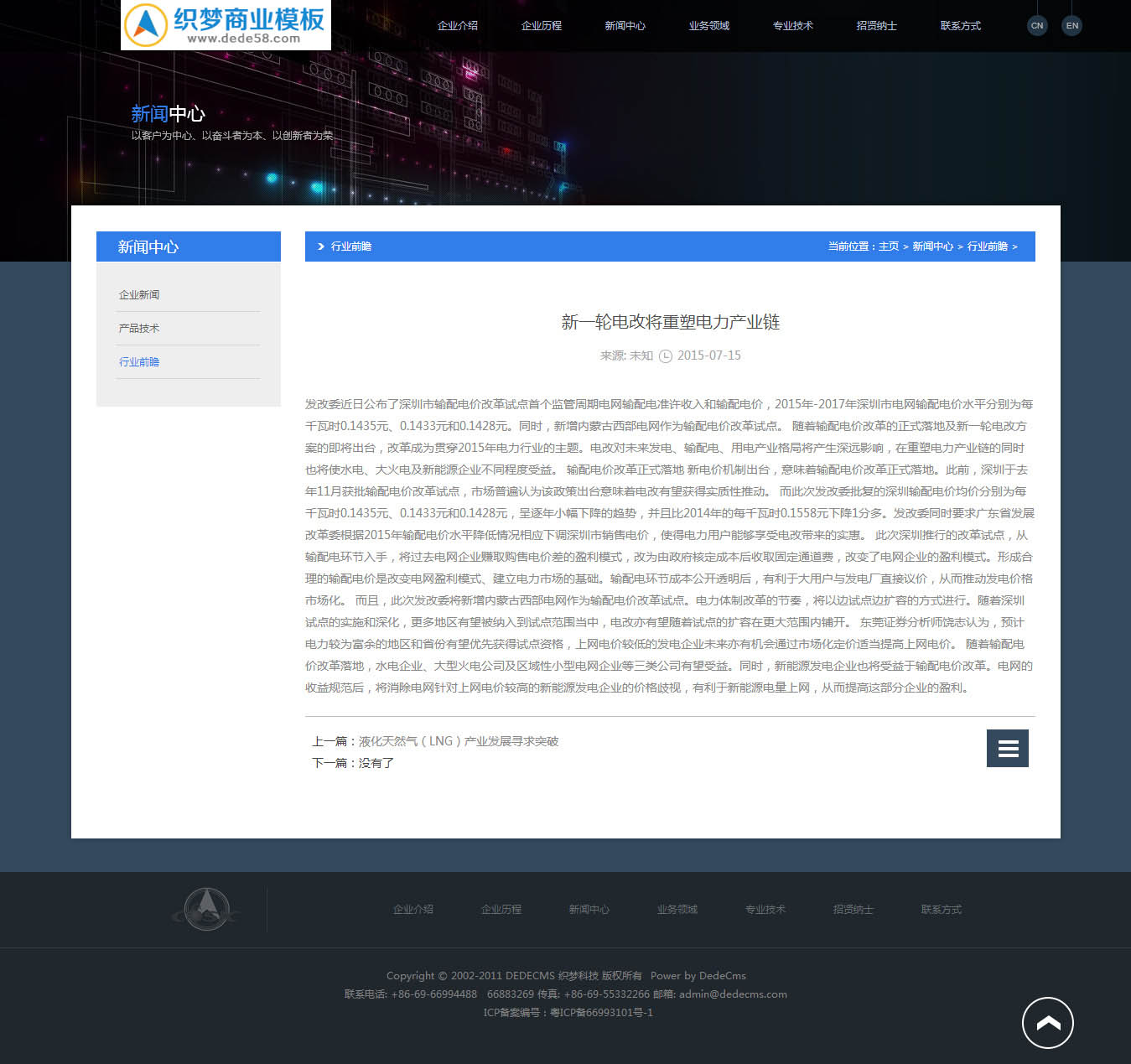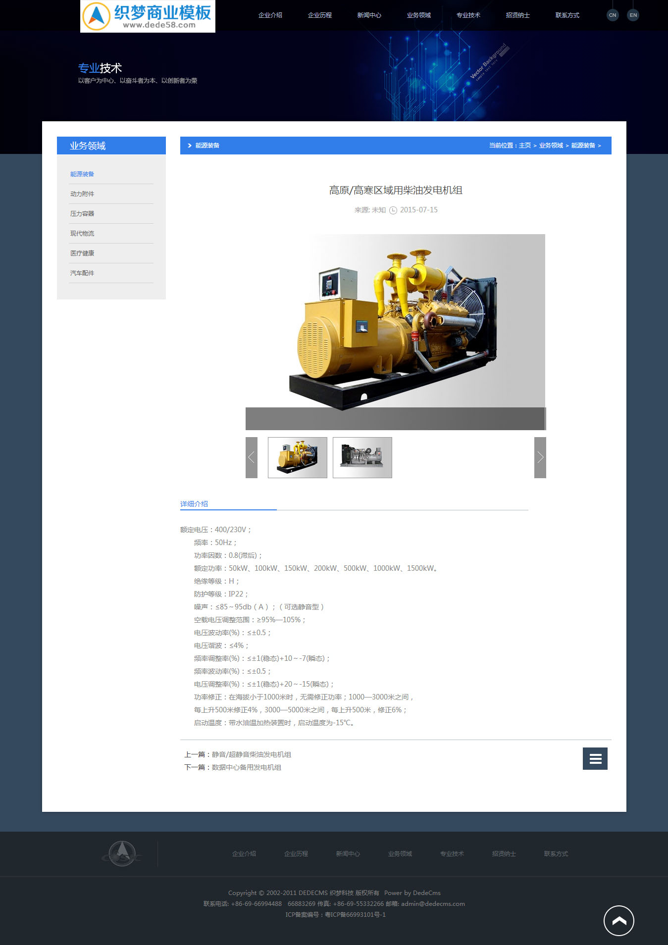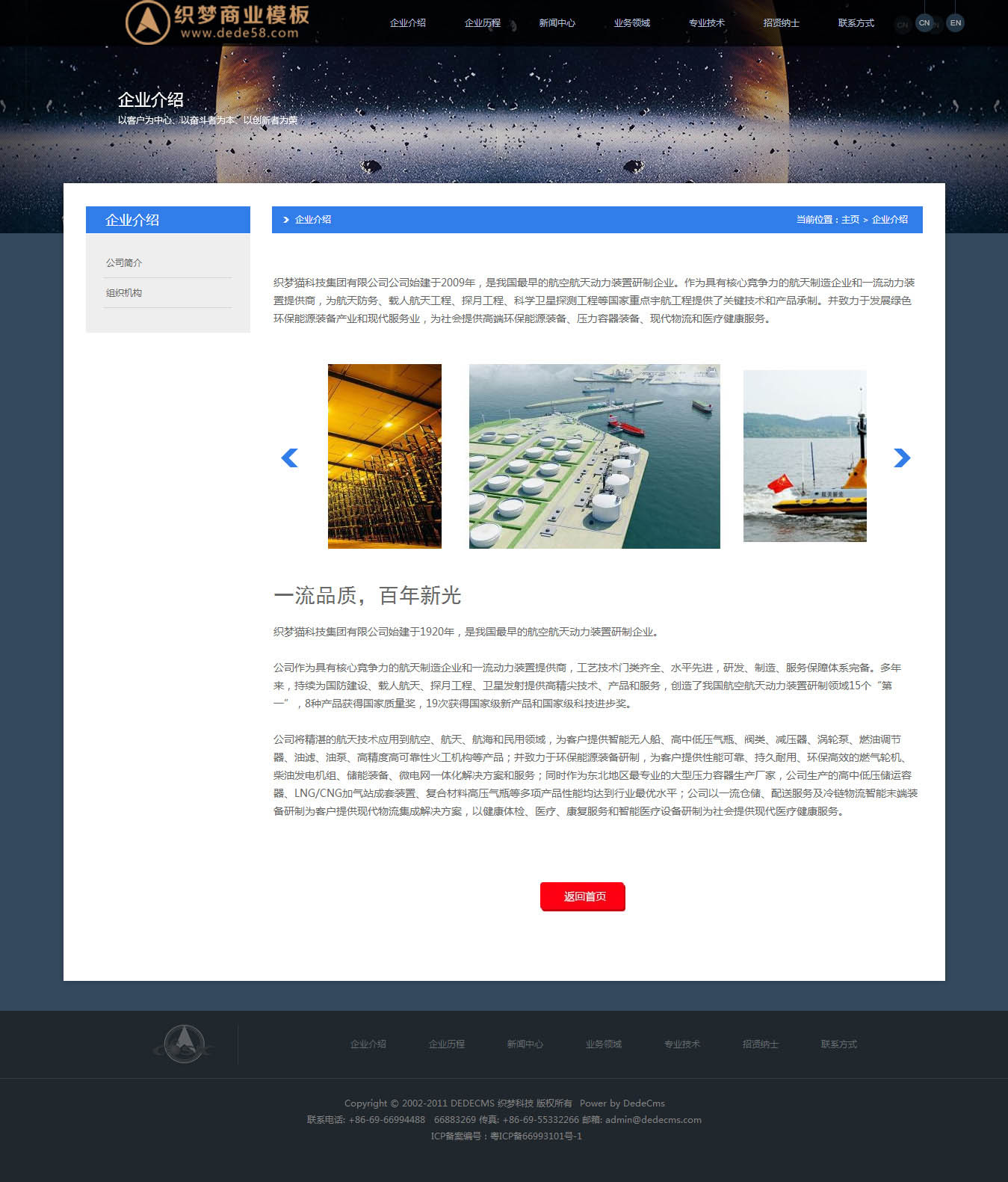 本模板基于DEDE Cms 5.7 GBK设计,5.5以上的版本应该都能使用。如果需要UTF-8请自转换,或者联系我转换编码。